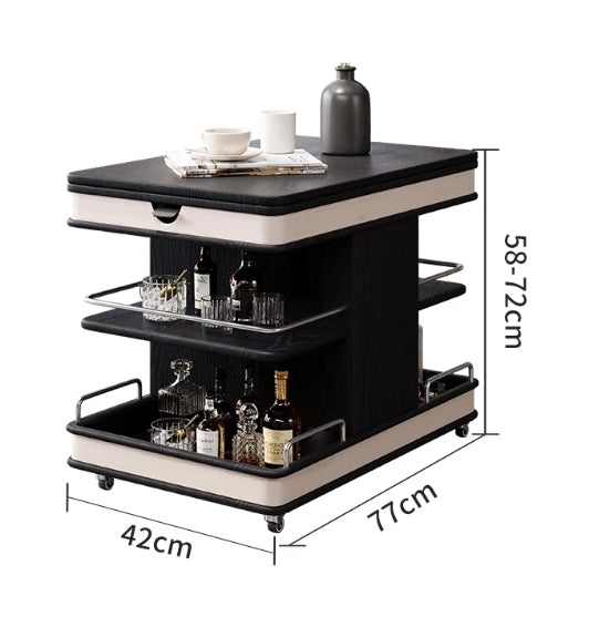Clever interior storage—including a hidden drawer with DTC soft-close runners and two open shelves—helps keep your space neat and organized. All of this is mounted on 360° swivel wheels with a single-touch lock.